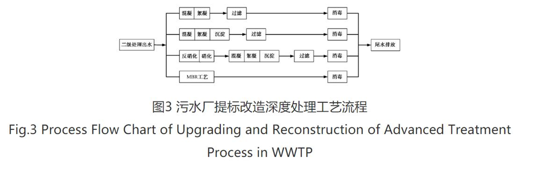 针对上述问题,在实际工程中需采取强化二级生物处理工艺或增加深度处理工艺的方法进行提标改造,以确保污水厂出水水质达到一级A标准。