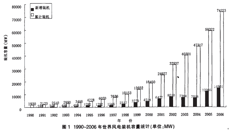 风力发电在新能源和可再生能源行业中增长速度最快,据相关数据统计。在过去10年中全球风电产业年平均增长率达到了惊人的28%,而美国、意大利和德国的年增长率更是高达50%以上.截至2008年底.全球累计风电装机容量已达到1.2亿kW.