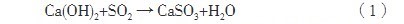 为减小烟气脱硫过程的温降,本项目采用石灰作为脱硫剂,来自粉仓的石灰与水接触制备成石灰浆液。垃圾焚烧烟气经脱硫塔上部的分配器进入脱硫塔体,烟气中的 SO2与塔顶中心的旋转雾化器喷出的 CaOH2溶液发生反应,化学反应方程式如下:
